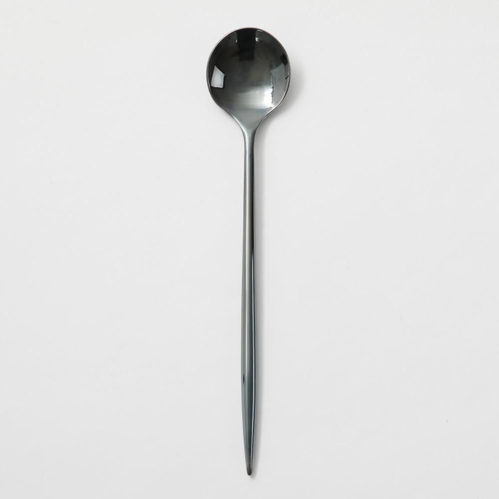 ステンレスを塗装すること無く黒色に変色させているため、深い傷を付けないかぎり色が剥がれてくる心配がありません。非常に高度な研磨を行っているため、ブラックのカトラリーの中では、他で見たことがないほど艶やかです口当たりが本当に滑らかで、金属のカトラリーならでは使いやすさと美しさが両立しています。