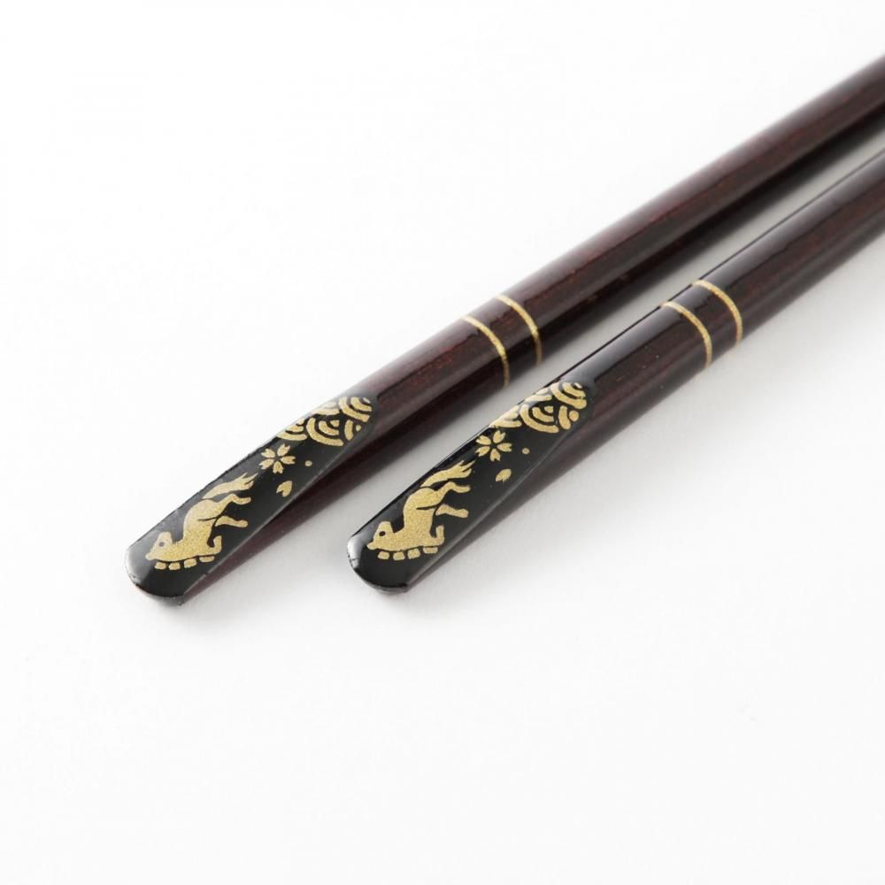 箸先は滑り止め加工してあり、品質の確かな若狭塗のお箸です。