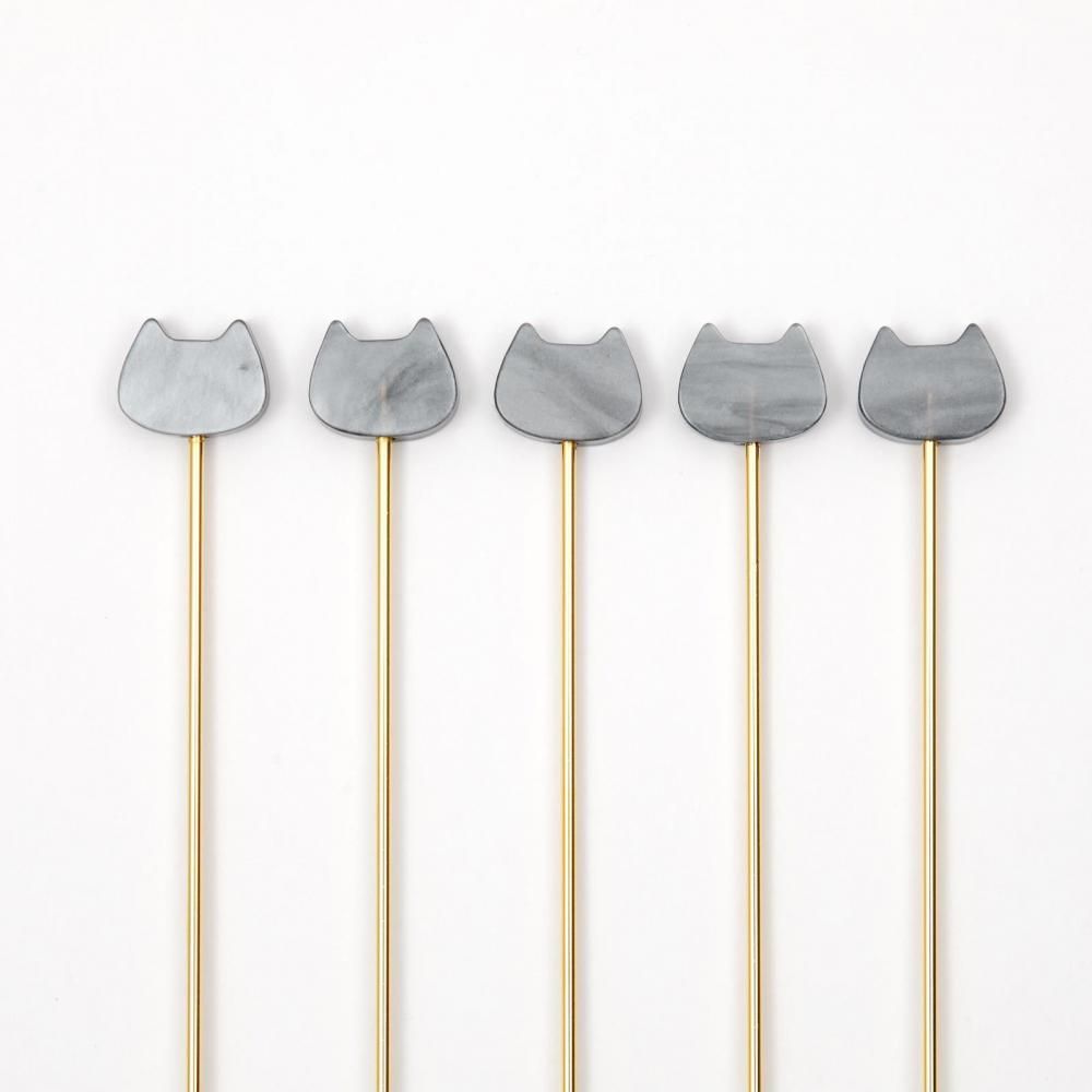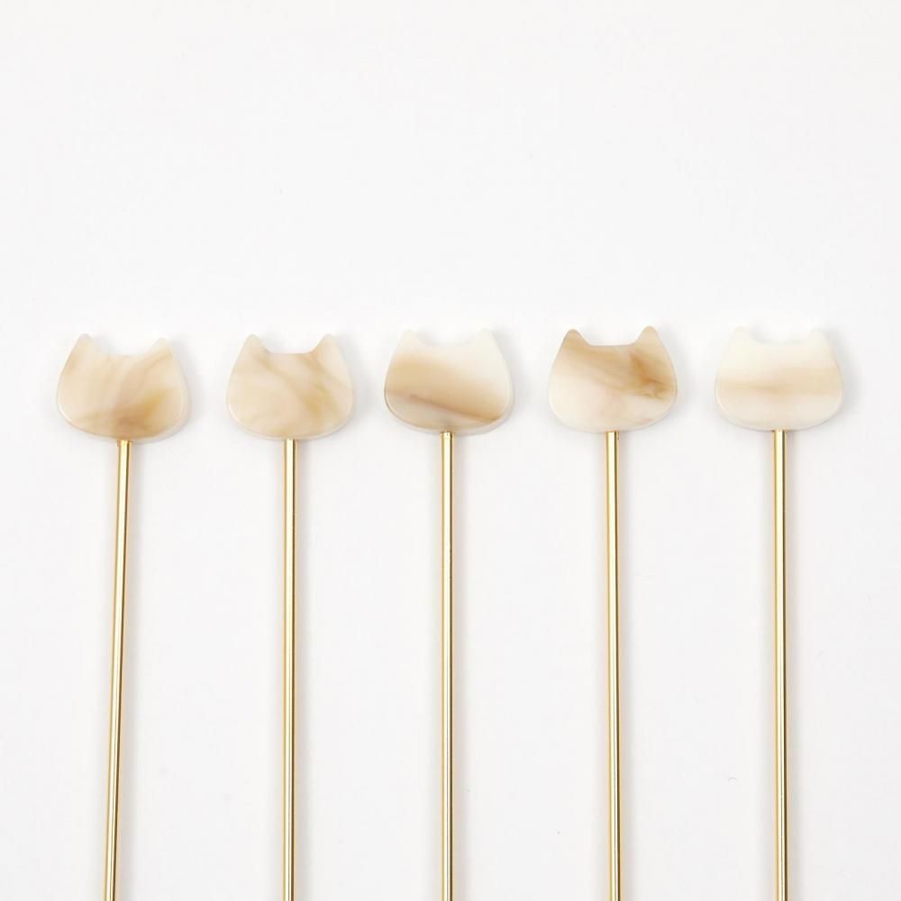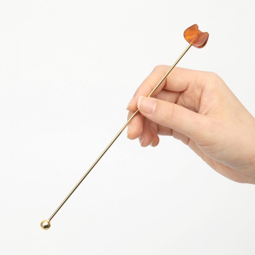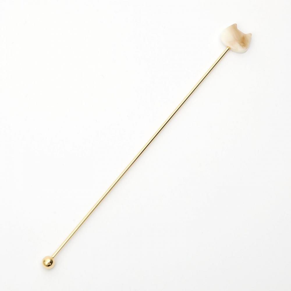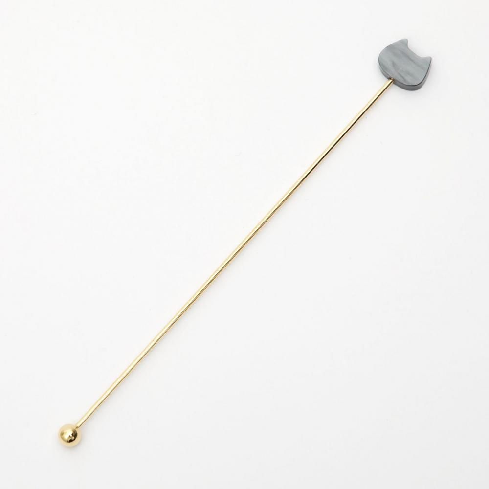 マーブル模様のネコのチャームが特徴のカトラリー。マーブルの落ち着いた雰囲気と、猫のシルエットがかわいらしいデザインとなっています。おやつタイムや来客時などいろいろな場面でネコの愛らしさを感じていただけます。こちらはマドラーです。