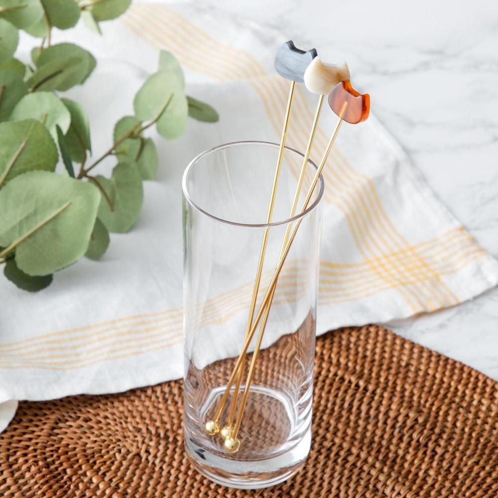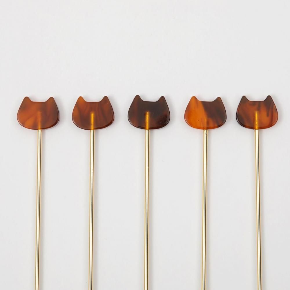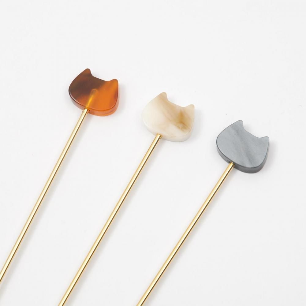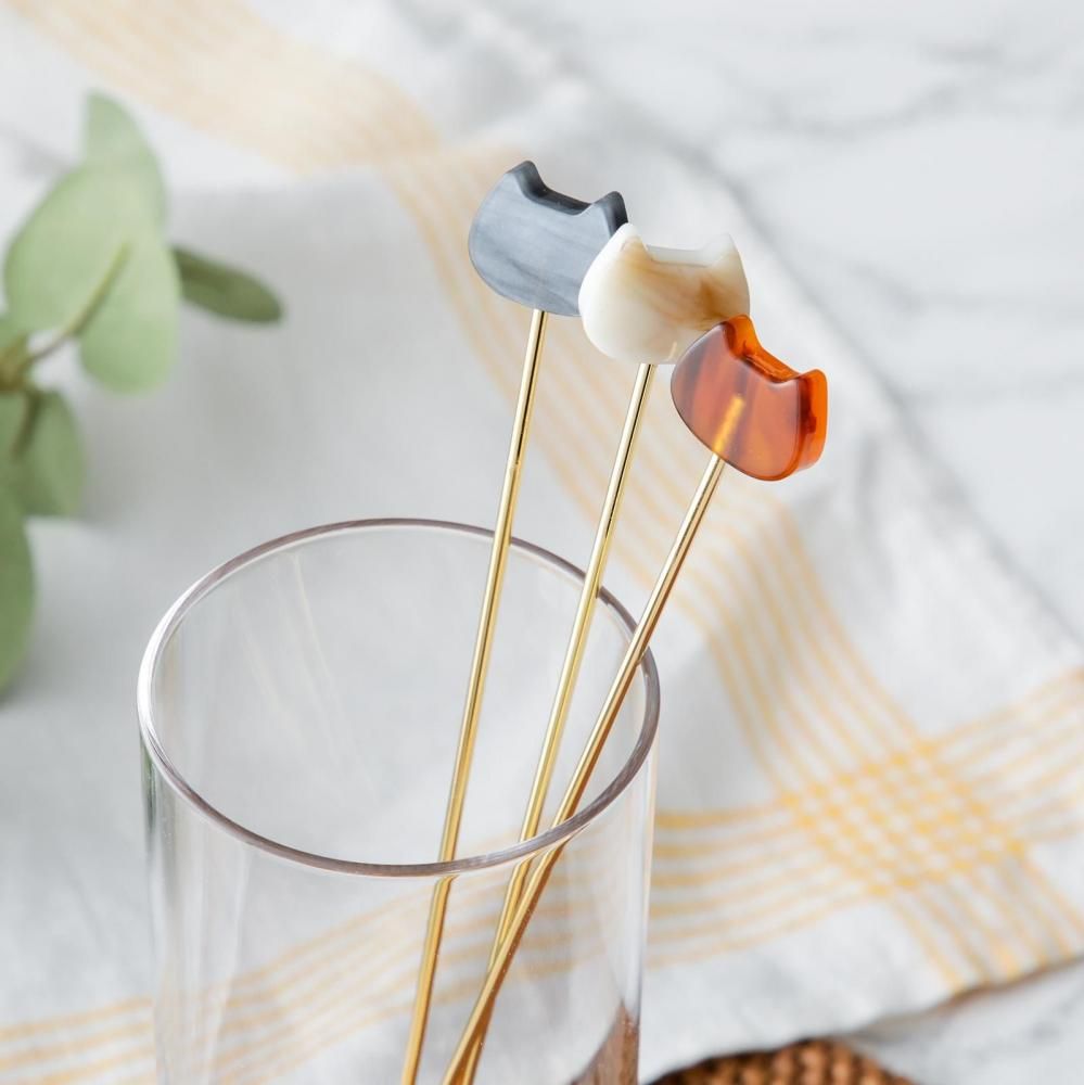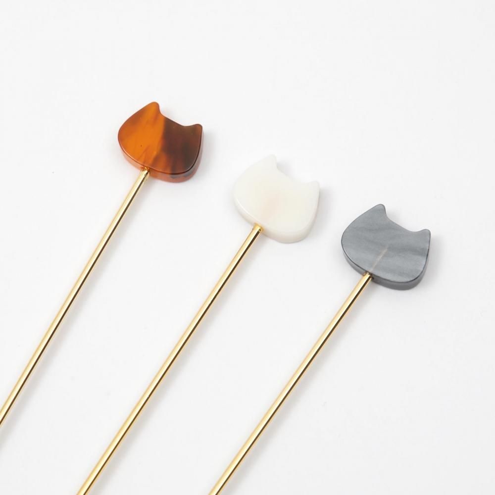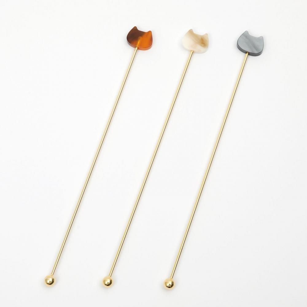 マドラー アクリルカトラリー ネコ マーブル ブラック シロ クロ ベッコウ ステンレス カトラリー かわいい おしゃれ シンプル シック 日本製 【メール便可】